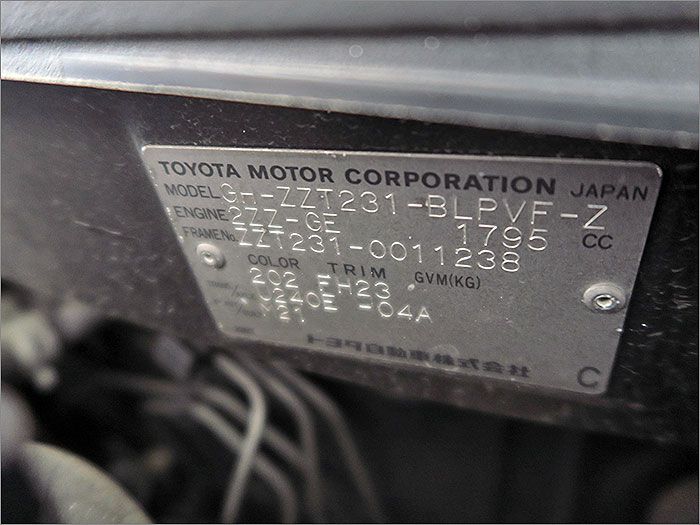 修復歴無し 車体番号下3桁238