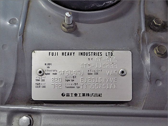 | 修復歴 | 無し | 車体番号下3桁 | 233 |