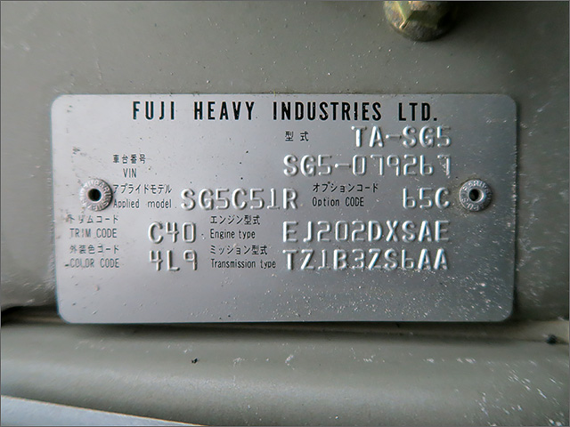 | 修復歴 | 無し | 車体番号下3桁 | 267 |