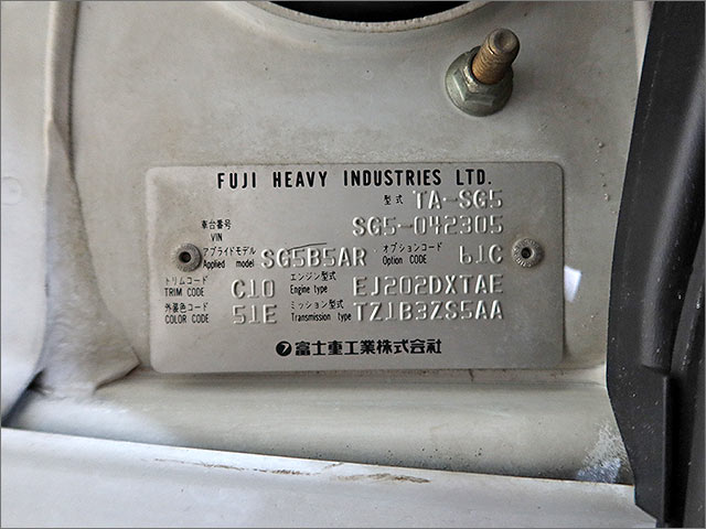 修復歴無し 車体番号下3桁305