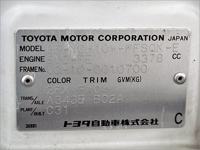 | 修復歴 | 無し | 車体番号下3桁 | 700 |