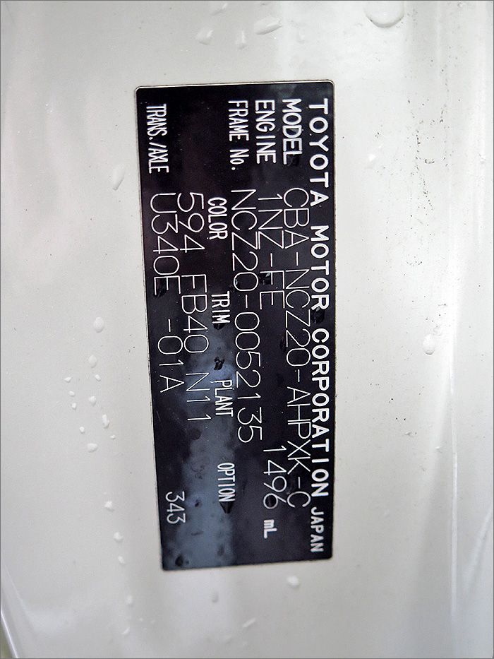 | 修復歴 | 無し | 車体番号下3桁 | 135 |