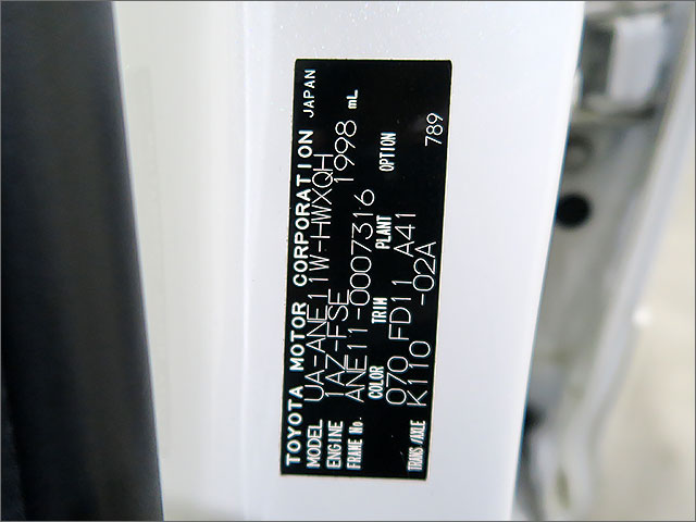 | 乗車定員 | 6 人 | 車検有効期 | 2年付月 |